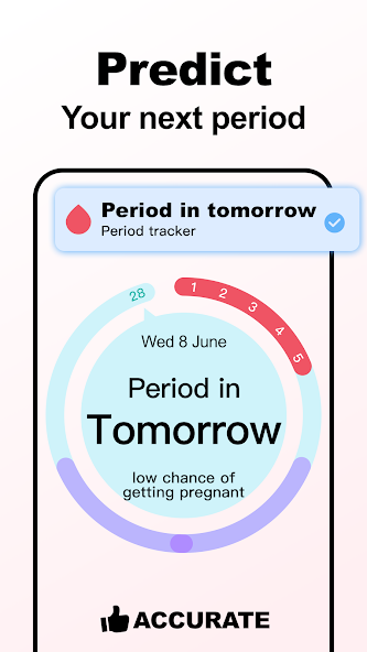 3. You can set reminder notifications for the next period , birth control pills and ovulation, track your fertile window , safe period, ovulation day, and predict your daily chances of getting pregnant.